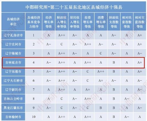 11月11日,全國縣域經(jīng)濟專業(yè)研究機構(gòu)——中郡研究所完成并發(fā)布了《第二十五屆縣域經(jīng)濟與縣域發(fā)展研究報告》,揭曉第二十五屆東北地區(qū)縣域經(jīng)濟基本競爭力十強縣。其中,吉林省延吉市連續(xù)25年持續(xù)位居?xùn)|北十強縣,排名始終位列吉林第一。