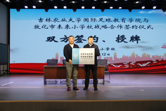 為進(jìn)一步深化高校與基礎(chǔ)教育合作,推動(dòng)實(shí)踐育人協(xié)同發(fā)展。近日,吉林農(nóng)業(yè)大學(xué)國(guó)際足球教育學(xué)院校外實(shí)踐教學(xué)基地與敦化市教育局戰(zhàn)略合作簽約儀式在敦化市未來小學(xué)校舉行。教育部東北校園足球發(fā)展研究中心秘書長(zhǎng)、吉林省學(xué)生體質(zhì)健康研究中心主任、吉林農(nóng)業(yè)大學(xué)國(guó)際足球教育學(xué)院院長(zhǎng)張志成同志,吉林農(nóng)業(yè)大學(xué)國(guó)際足球教育學(xué)院副書記趙立剛同志及學(xué)院一行人員,敦化市教育局黨組書記、局長(zhǎng)姬廣建同志,敦化市教育局黨組成員、教育工委專職副書記張冬輝同志,以及卓越科技有限公司代表等出席了本次活動(dòng)。