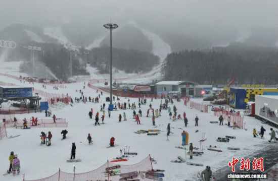 眾多滑雪愛好者來到吉林北大湖雪場。 吉林市冰雪試驗(yàn)區(qū)北大湖雪場供圖