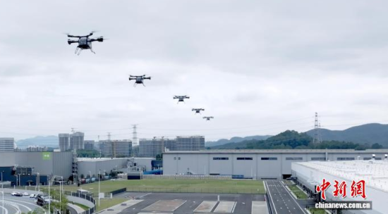 3月5日,匯天飛行汽車(chē)量產(chǎn)工廠,多機(jī)試飛進(jìn)行性能驗(yàn)證。(小鵬匯天供圖)