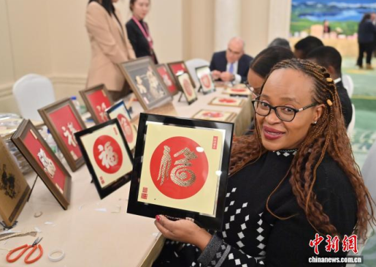 12月16日,由中國(guó)外交部組織的駐華使節(jié)代表團(tuán)赴吉林省參訪。當(dāng)晚,代表團(tuán)成員體驗(yàn)了查干湖魚(yú)皮制作、長(zhǎng)白山滿族剪紙、白氏面塑、繩編和趙家傳統(tǒng)古箏技藝等多項(xiàng)吉林省非物質(zhì)文化遺產(chǎn)代表性項(xiàng)目,近距離了解中國(guó)傳統(tǒng)技藝及其傳承現(xiàn)狀。中新社記者 張瑤 攝