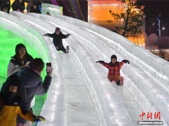 12月19日晚,長(zhǎng)春冰雪新天地開門迎客。2025-2026雪季的長(zhǎng)春冰雪新天地占地面積156萬平方米,開發(fā)了76萬平方米的冰雪游樂空間,總用冰用雪量達(dá)85萬立方米,冰雪雕塑200余座。隨著夜幕降臨,冰雕景觀亮燈,整個(gè)園區(qū)仿佛一座如夢(mèng)如幻的冰雪王國(guó)。中新社記者 張瑤 攝