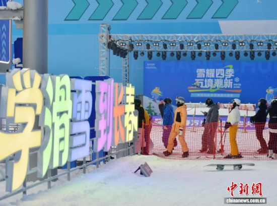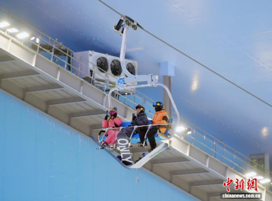 12月25日,吉林長春,滑雪愛好者乘坐纜車登頂。當(dāng)天,長春萬達(dá)滑雪場正式開業(yè),該雪場為亞洲垂直落差最大的室內(nèi)滑雪場,最大落差達(dá)85米,總建筑面積約5萬平方米,可同時(shí)容納約1200人滑雪。中新社記者 張瑤 攝