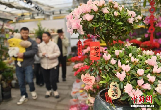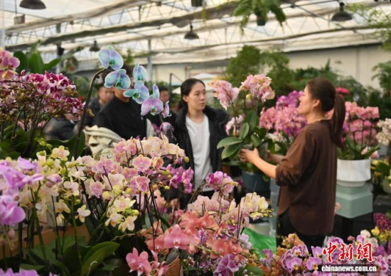2月9日,吉林長(zhǎng)春,商家在修剪鮮花。春節(jié)臨近,長(zhǎng)春市各大花卉市場(chǎng)迎來(lái)年宵花銷售熱潮。蝴蝶蘭、大花蕙蘭、杜鵑花等象征喜慶的鮮花琳瑯滿目,吸引眾多市民前來(lái)選購(gòu);ㄉ虃兠β祩湄洝⒋虬,現(xiàn)場(chǎng)一片繁忙景象。中新社記者 張瑤 攝