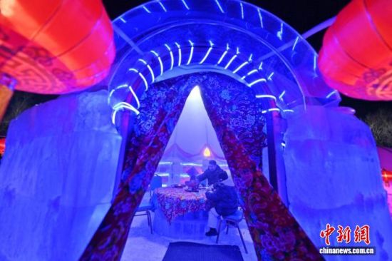 2月4日,在吉林長春世界雕塑園內(nèi),一座晶瑩剔透的冰屋中熱氣繚繞,來自上海的游客圍坐在冰桌前,品嘗著沸騰的火鍋,親身體驗(yàn)“冰火兩重天”的奇妙感受。張瑤 攝